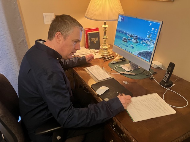 Photo: Working at my desk on research projects for university as part of the Research 2 Venture program